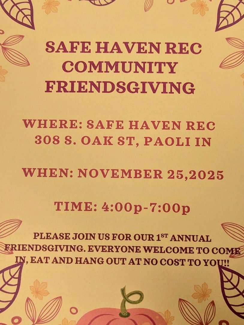 Join Safe Haven for a Thanksgiving meal with friends!! You are not alone.